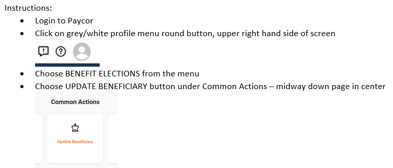 Please double check your life insurance beneficiaries while in the Paycor system. To double check and update, please follow the instructions below.