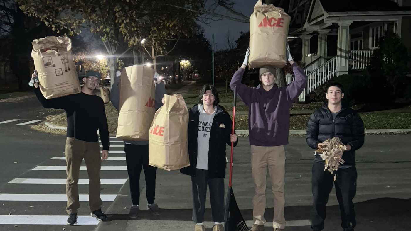 Members of Dominican University's men’s volleyball team took time out this month to help Oak Park residents make a clean sweep of their late autumn yards.